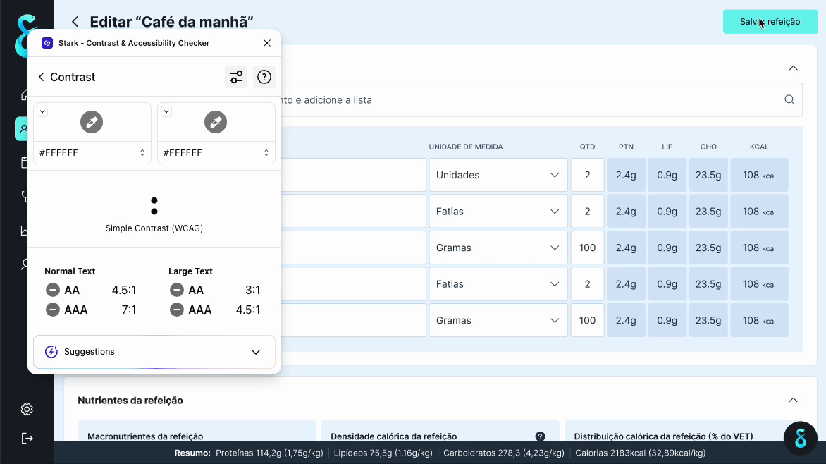 The project combines a clean and modern design with accessibility and ease of use, having been tested and validated by the best nutritionists in Brazil.